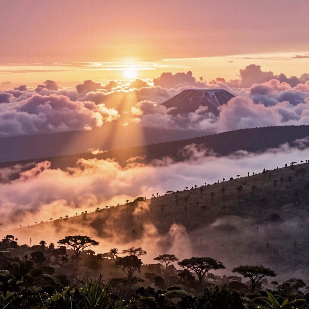 Представьте рассвет у подножия Килиманджаро — снежная вершина купается в розовых лучах, а внизу, на террасах плантаций, капли росы переливаются как бриллианты. Здесь, в Танзании, рождается кофе с характером африканских гор: яркий, фруктовый, с искрящейся кислотностью. Это не просто напиток — это эхо древних вулканов, застывшее в каждой чашке.