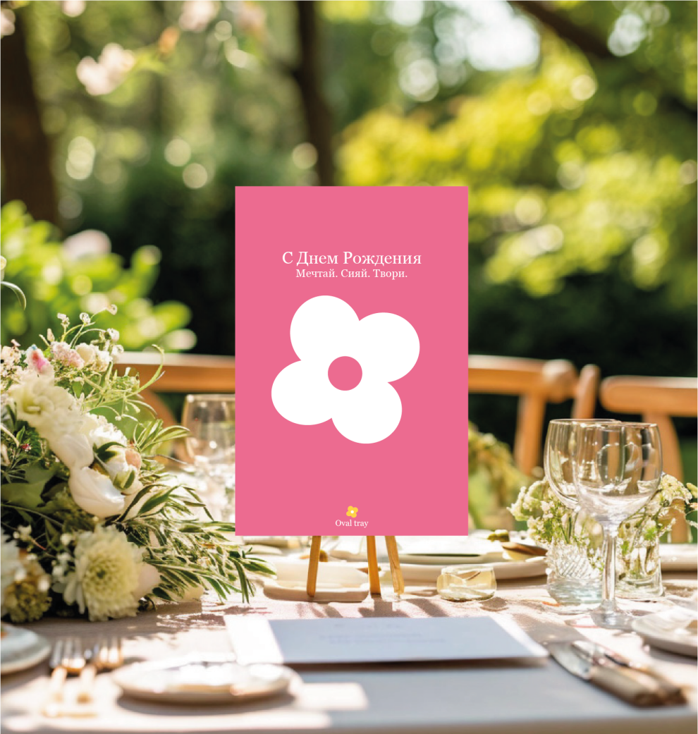 • Oval tray Авторская digital-иллюстрация С Днем Рождения. Мечтай. Сияй. Твори приобретается исключительно для вашего личного удовольствия и украшения пространства.