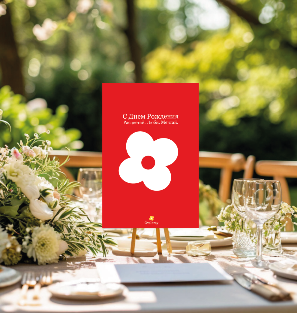 • Просто добавьте Oval tray Авторскую digital-иллюстрацию С Днем Рождения. Расцветай. Люби. Мечтай в корзину и укажите ваши контактные данные — ФИО, e-mail и номер телефона.